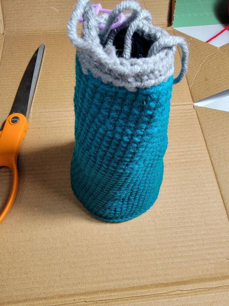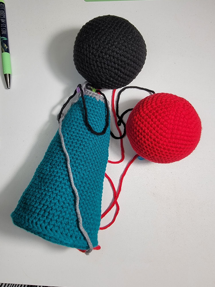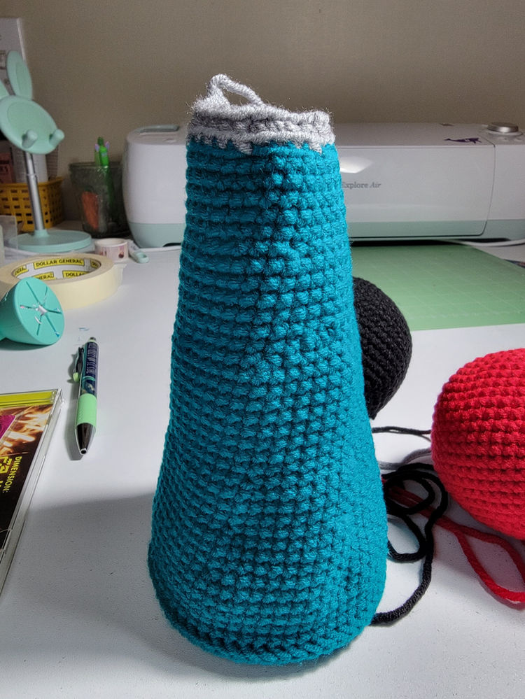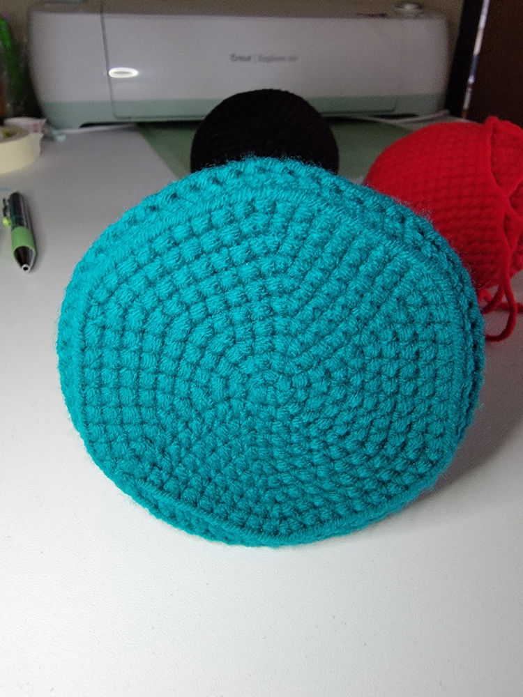 As you can see there are a couple of grey stripes at the top, ignore that for this week. We are going to focus on crocheting all the teal and pick up with those grey rounds next week. Next week, will be about stuffing and assembling Jack.