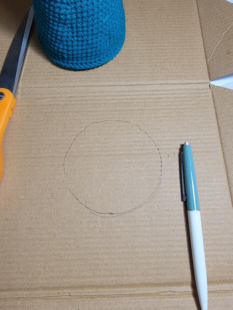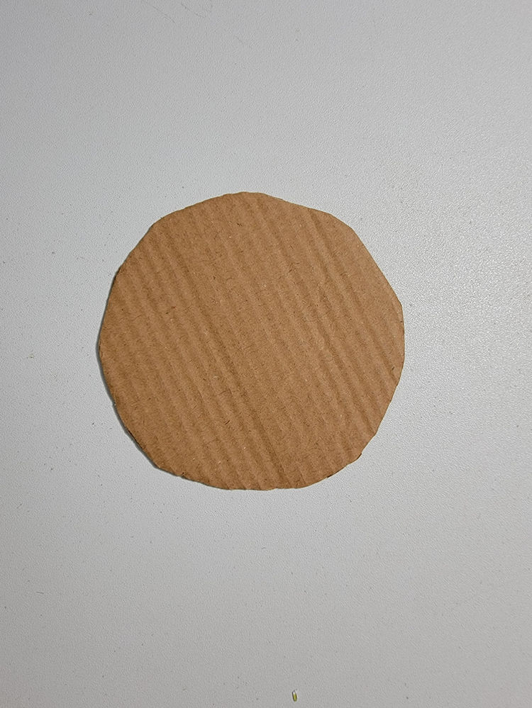 This is where we will take a moment to make our cardboard base. Again, I used a 3inch wood craft circle. But your project may be a different size. So just find a piece of cardboard. I’m sure we all have an Amazon or Weverse box sitting around.