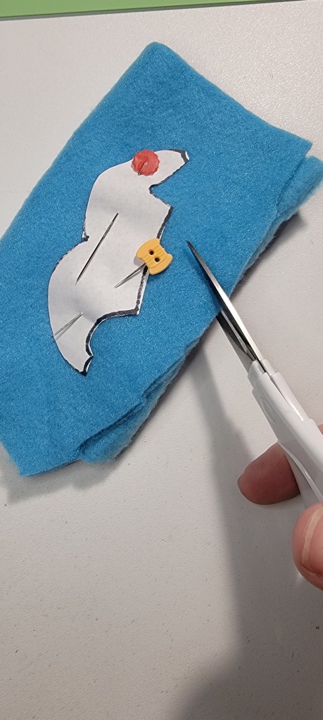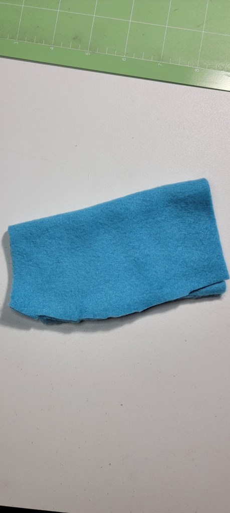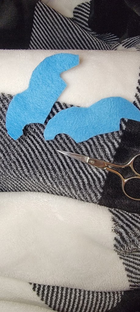 Take your piece of felt or fleece, and fold it in half. Cut out two hat pieces. It is asymmetrical on purpose. That is how the Jack in the concept art looks. I used felt for the Jack version hat and fleece for the Hope version. I found that the fleece holds it shape better when stuffed, but both work fine.