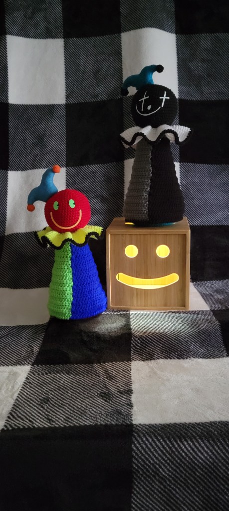 I decided to combine the last two steps into one post; compared to our other steps, they are each relatively short. At the end of this week, you will have a complete version of the Jack in the Box doll! I can’t believe we are here already! I’ve had so much fun creating this pattern and having you all follow along! Step 6 is making the hat; Step 7 is putting on the face! Here we go…