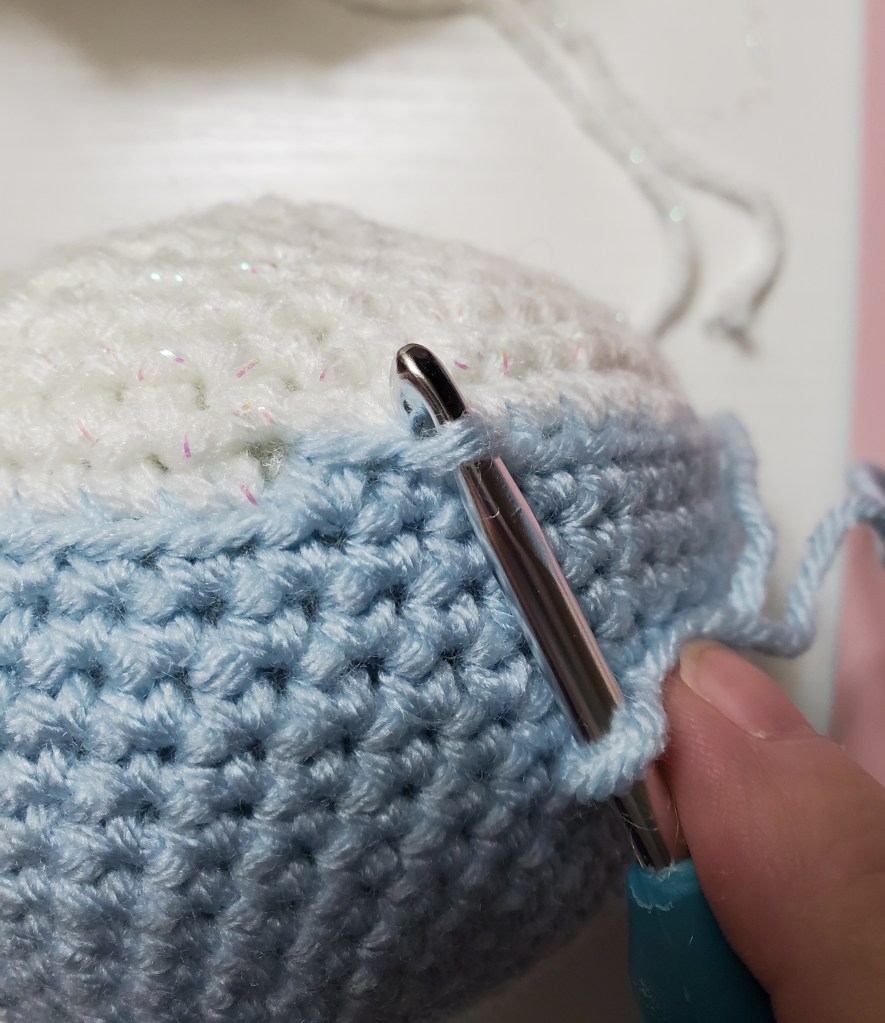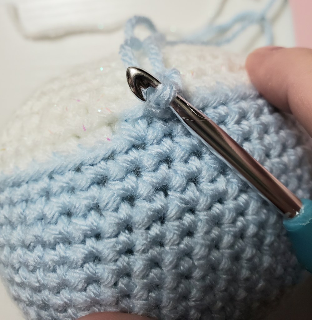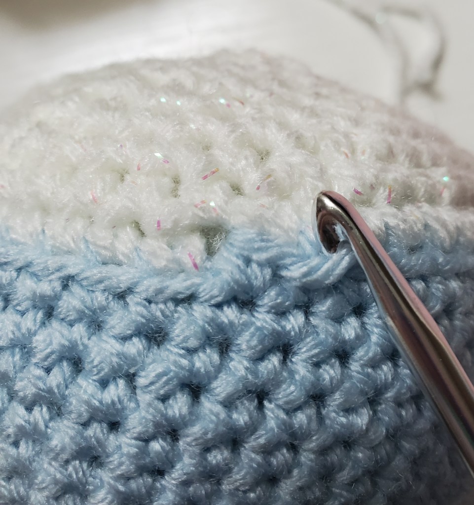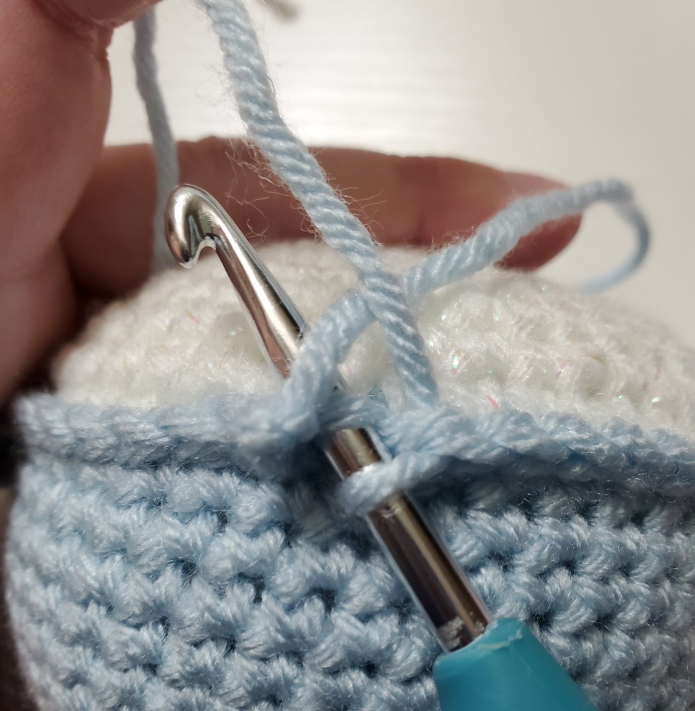 Row 1: You will begin working in rows here. Working around the previous row of slip