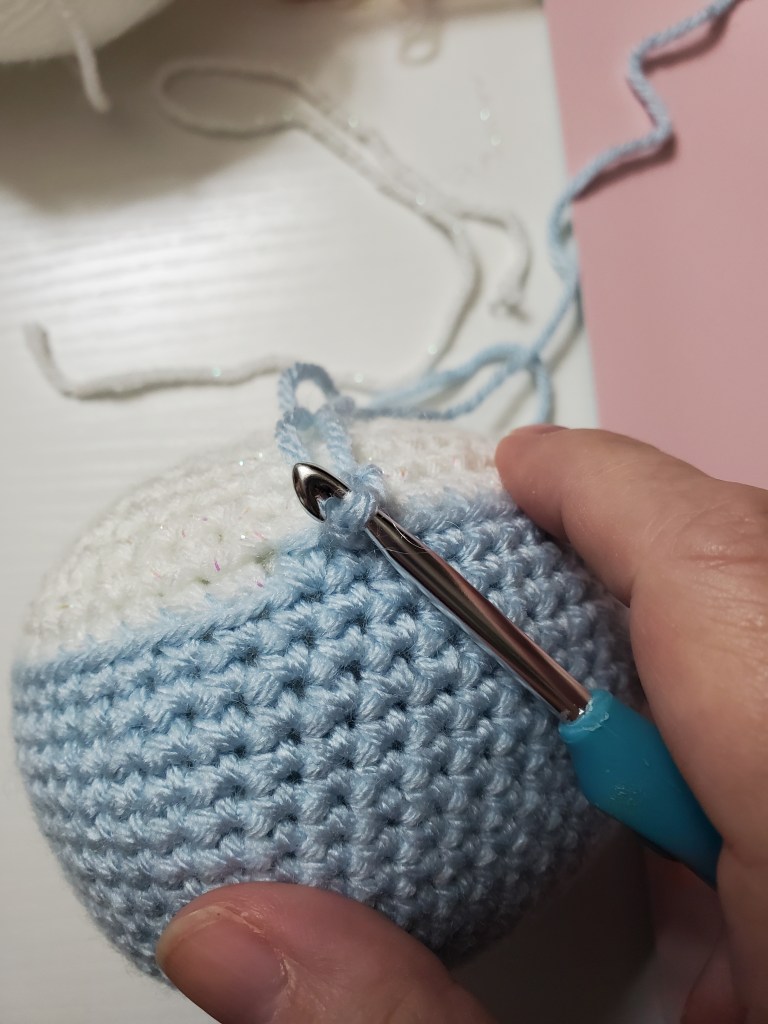 Continue to sl st until you reach the first sl st. Join with sl st.