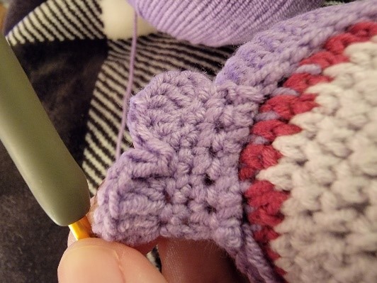 your yarn with a sl st to the stitch indicated in the photo. See photo gallery below.