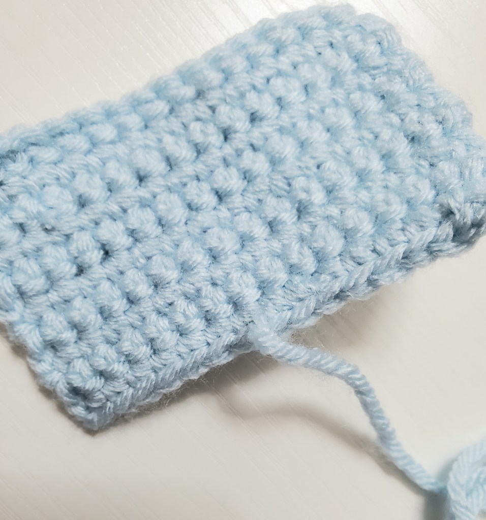 The knot will help hold your yarn in place while we complete the next step. Do NOT pull the yarn you have woven in too tight. Your rectangle should still be a flat rectangle.