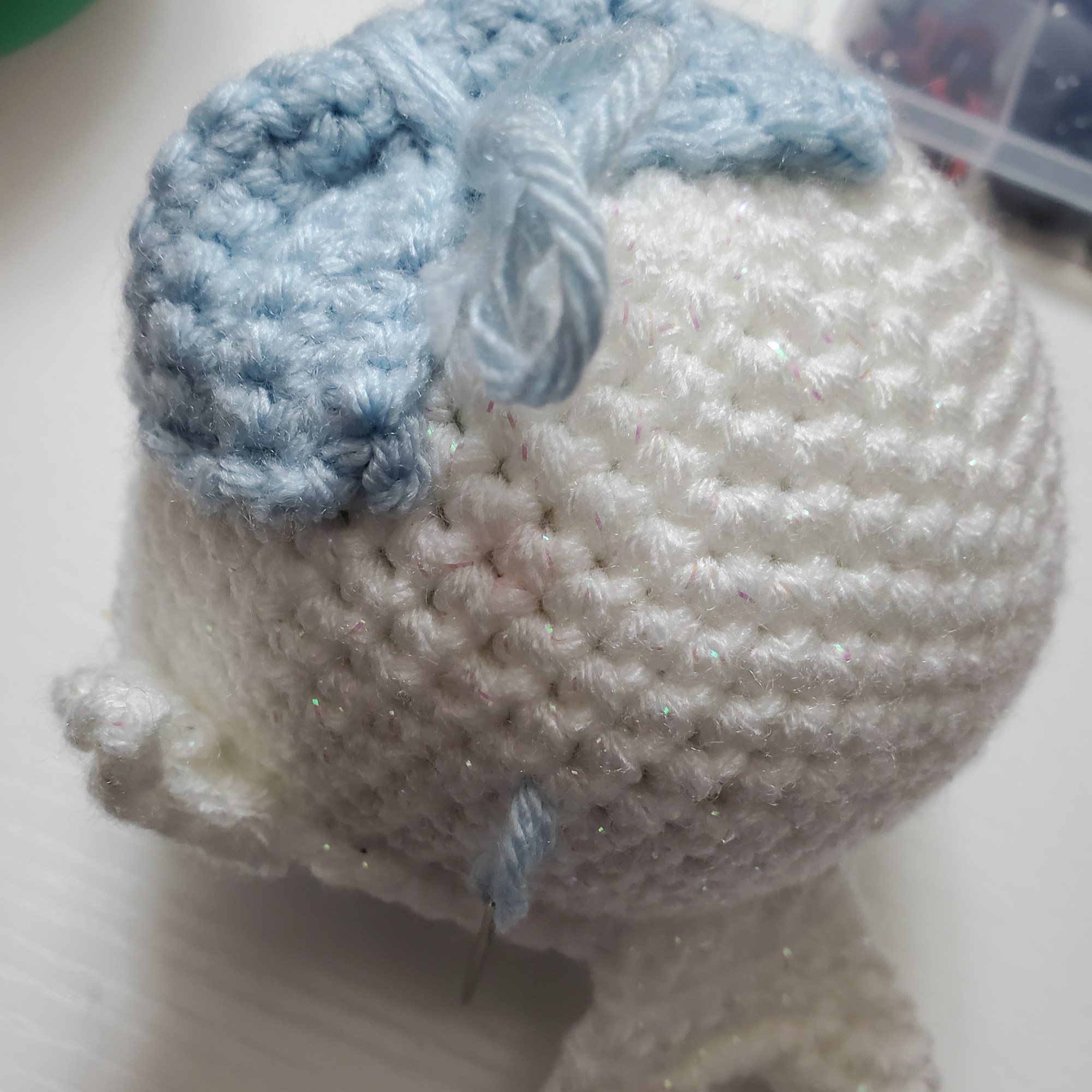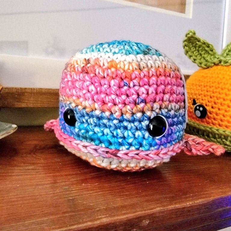 Run the yarn down through your whale and cut close to the body.