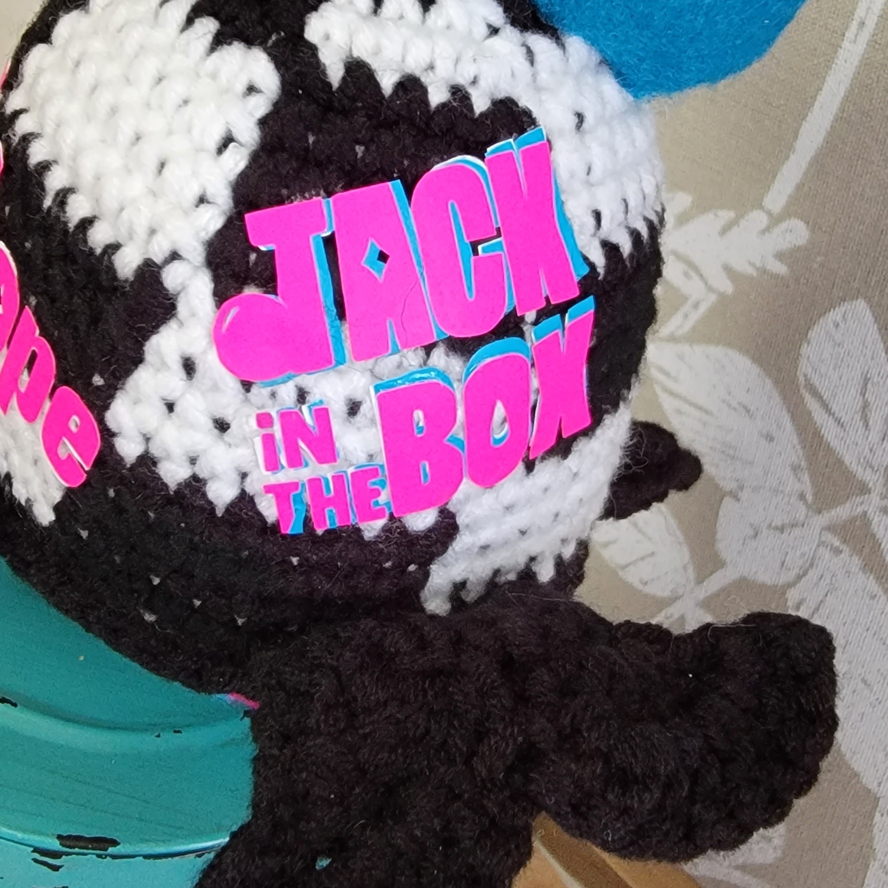 Now, you will sew the bow to your whale’s head. I just used a normal straight stictch and sewed around the outer edges of my stitches.